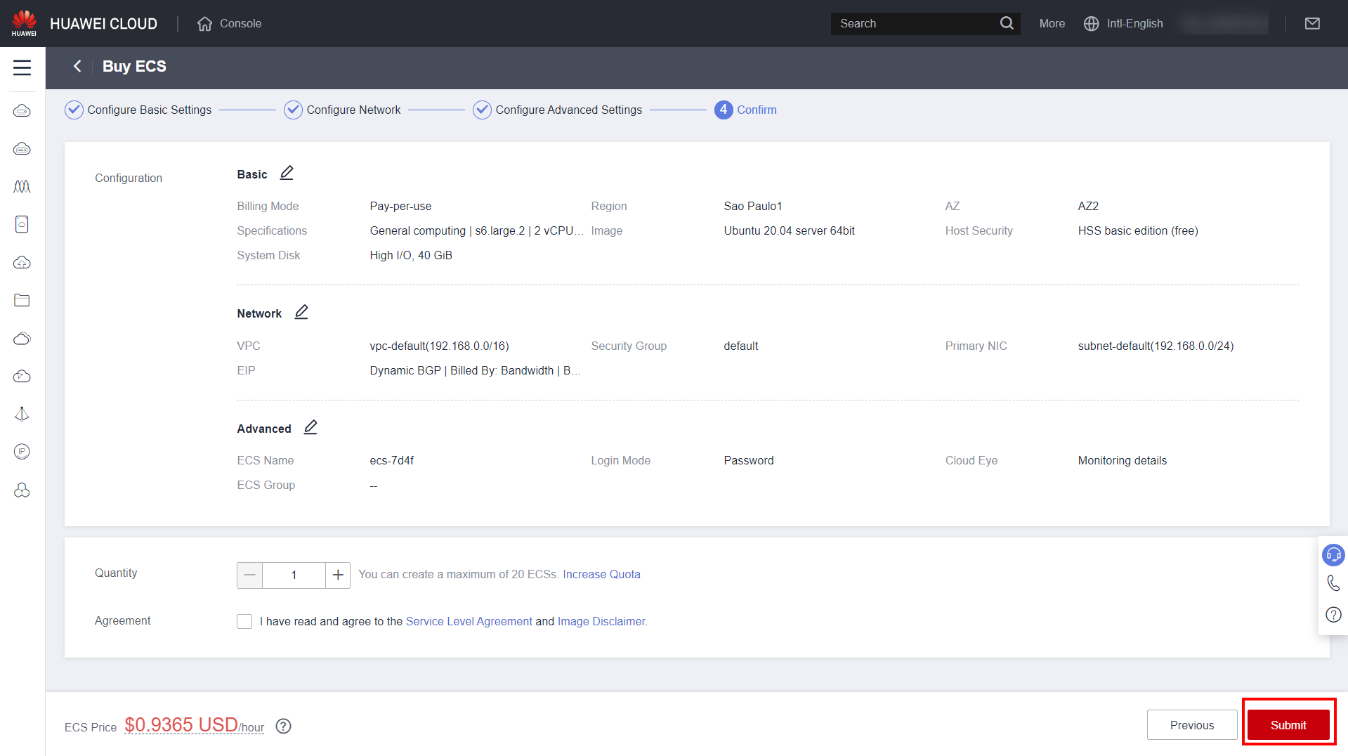 Return to the ECS section in the Huawei Cloud console and access the created instance by clicking “Remote Login”. Log in as the “root” user with the password configured when creating the instance.