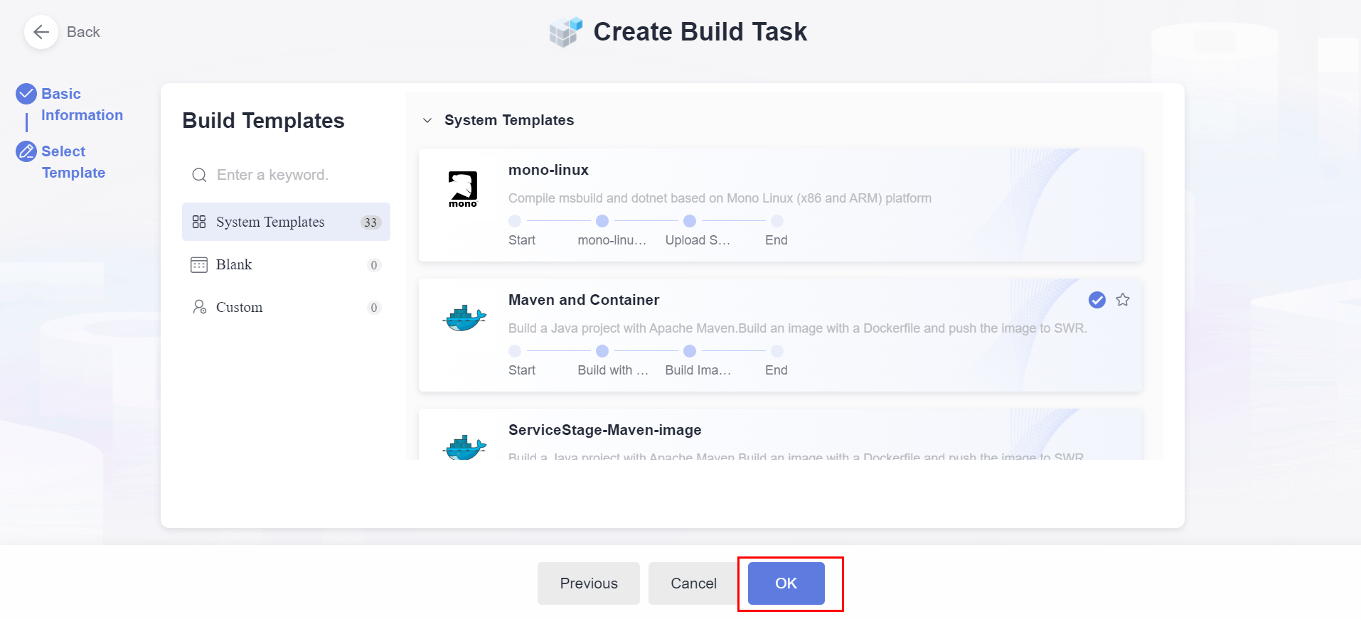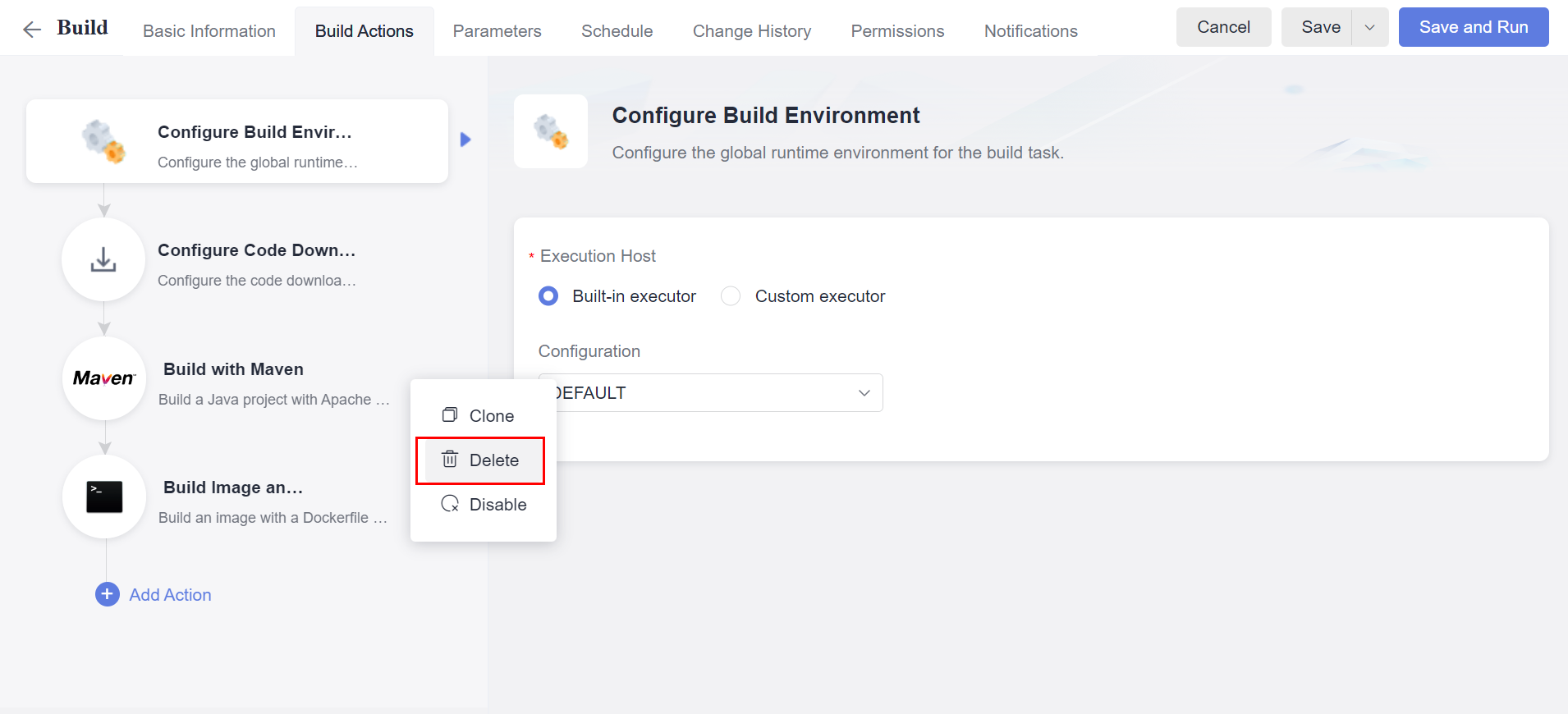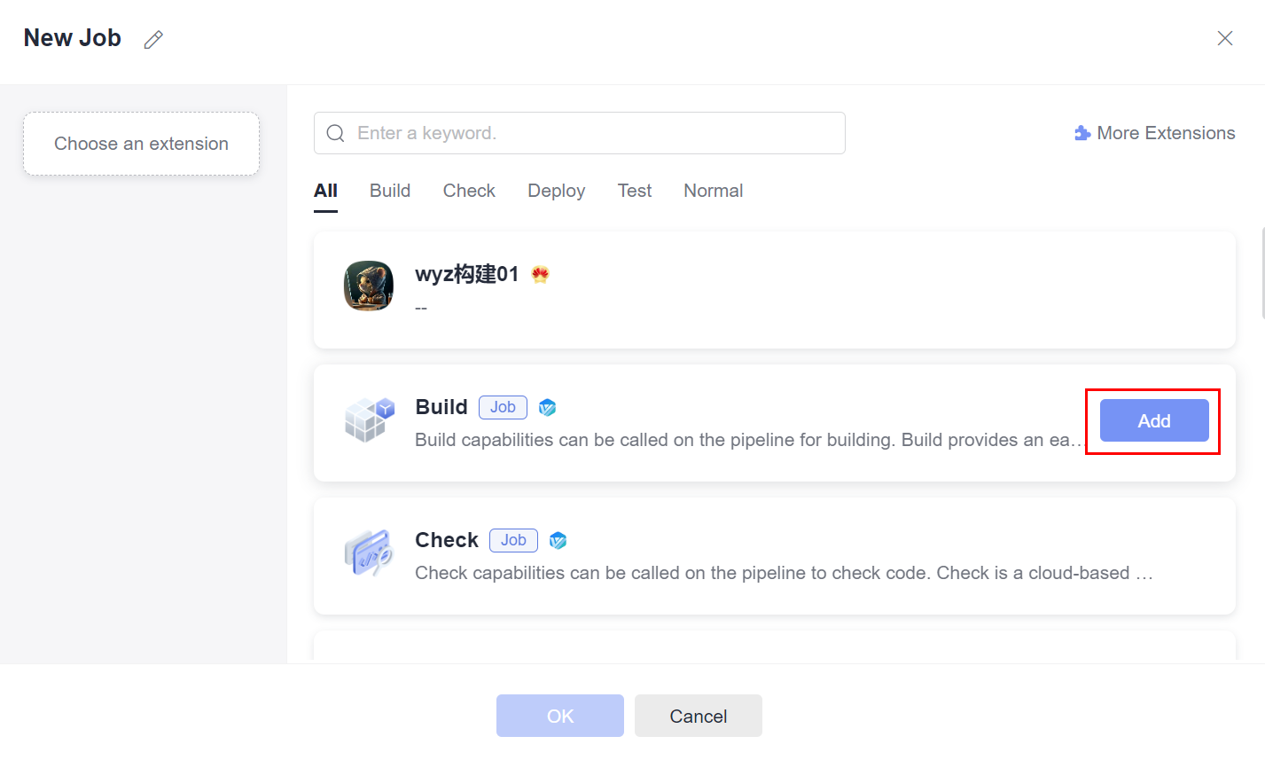 - Third-party pipeline: In the final step of the pipeline, simply add an action to upload the image to the SWR repository.