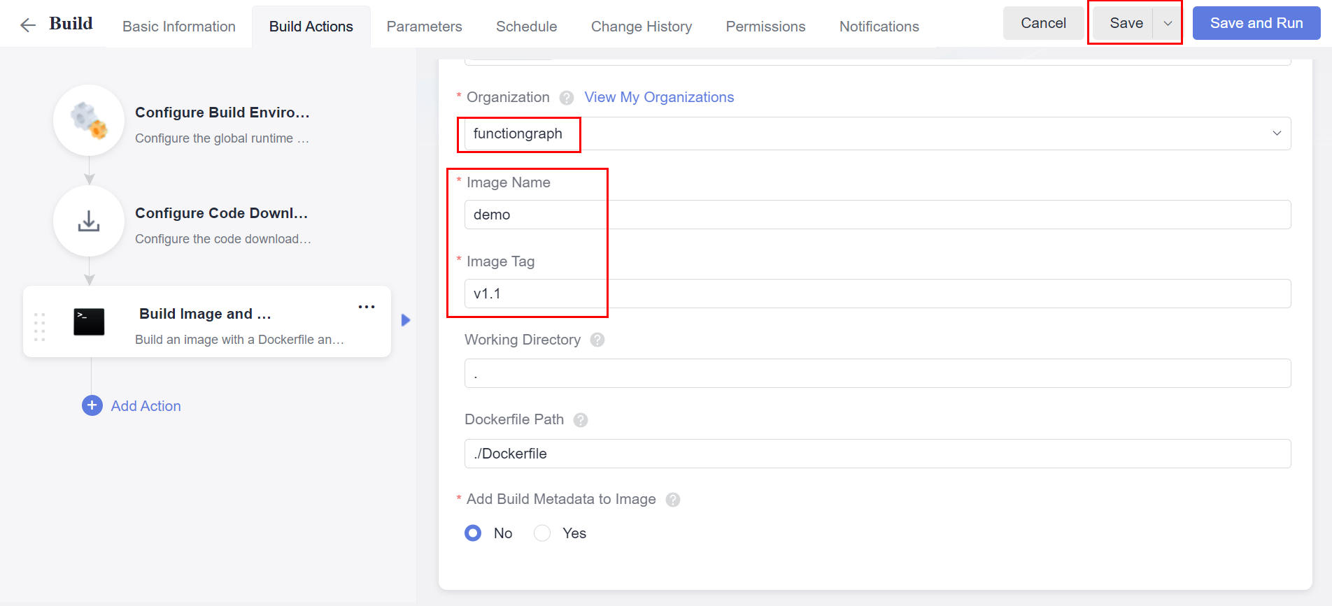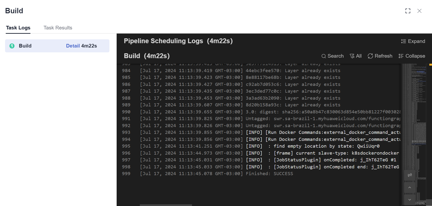 Having ensured that the name and tag of the image published to SWR via the Pipeline is exactly the same as the image associated with the function in FunctionGraph, any changes made to the image will be reflected in the FunctionGraph function.
