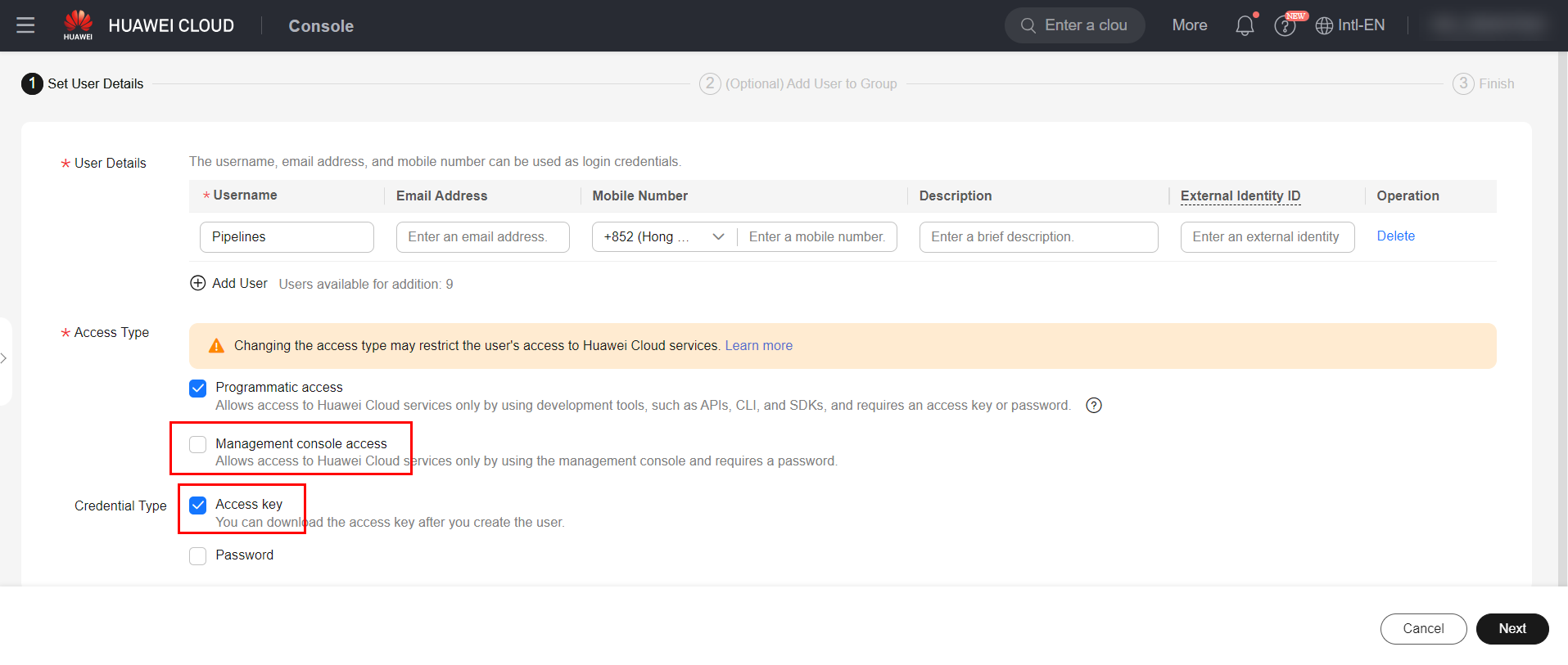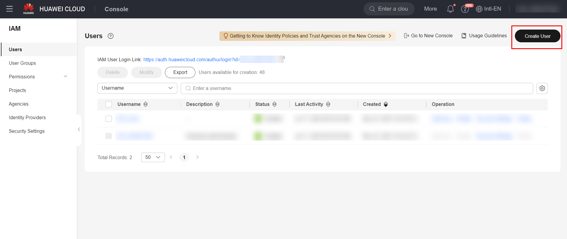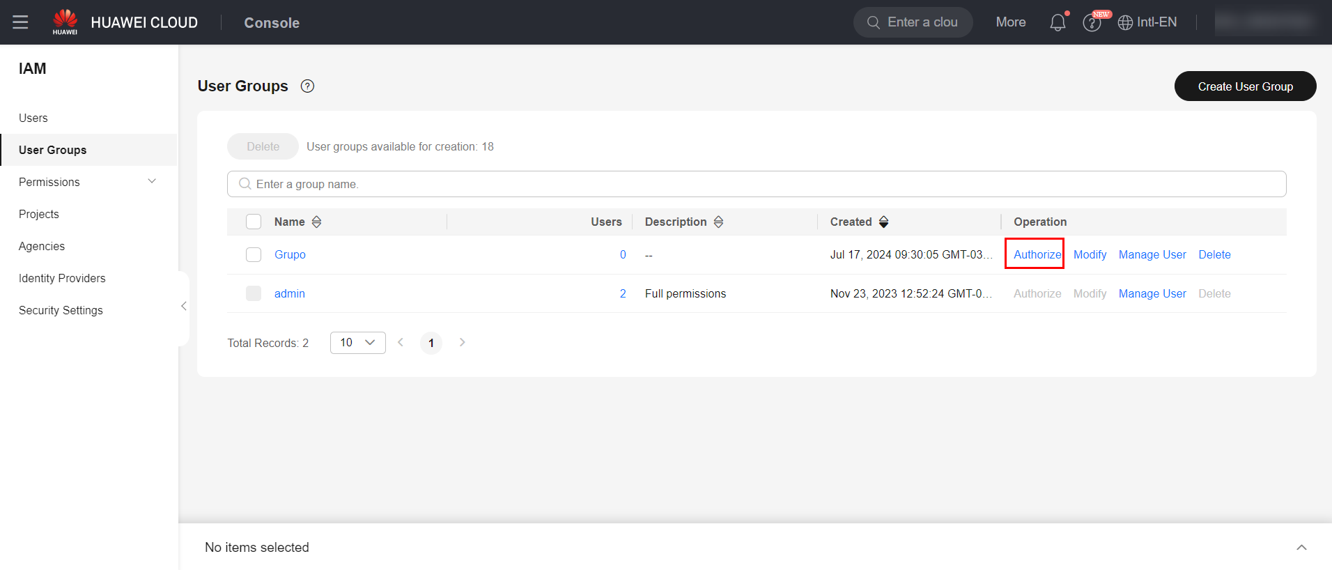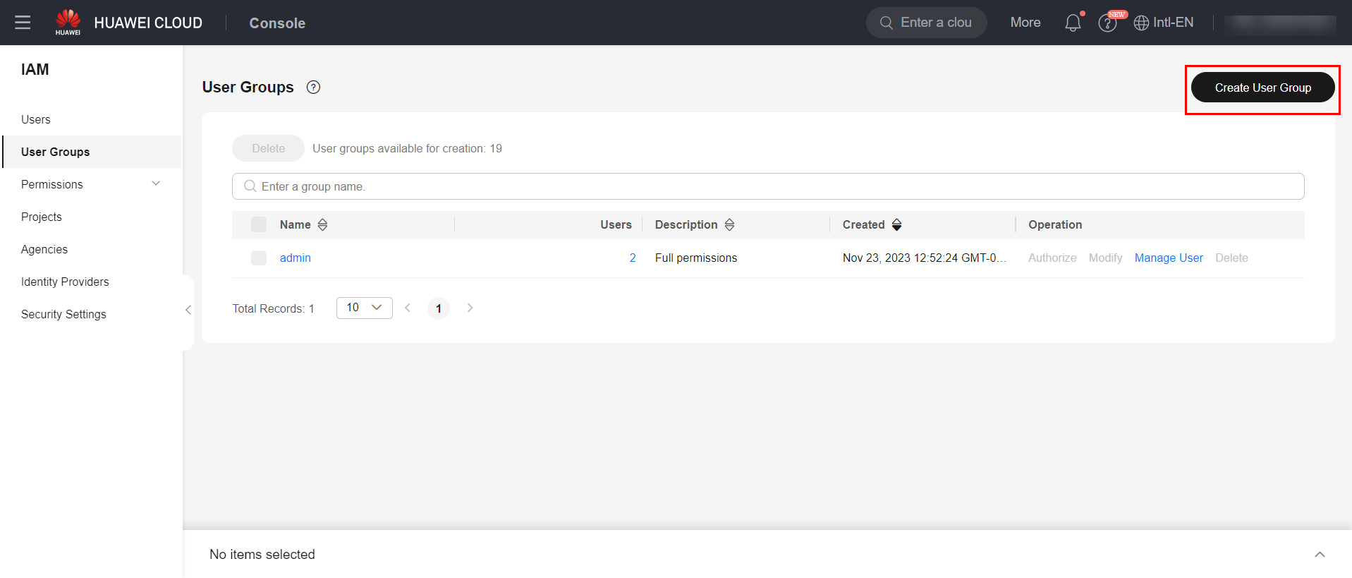 To get permanent authentication credentials with SWR, first log in to the Huawei Cloud console and access the Identity and Access Management (IAM) service, click “User Groups” and then “Create User Group”.