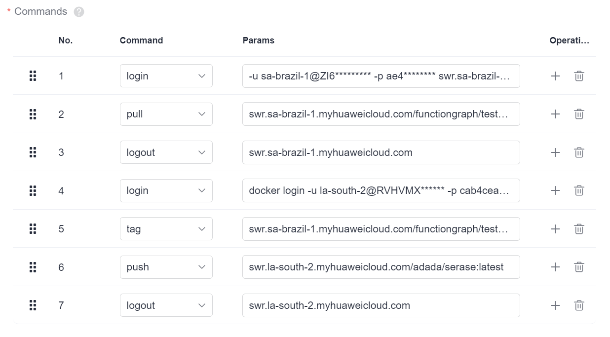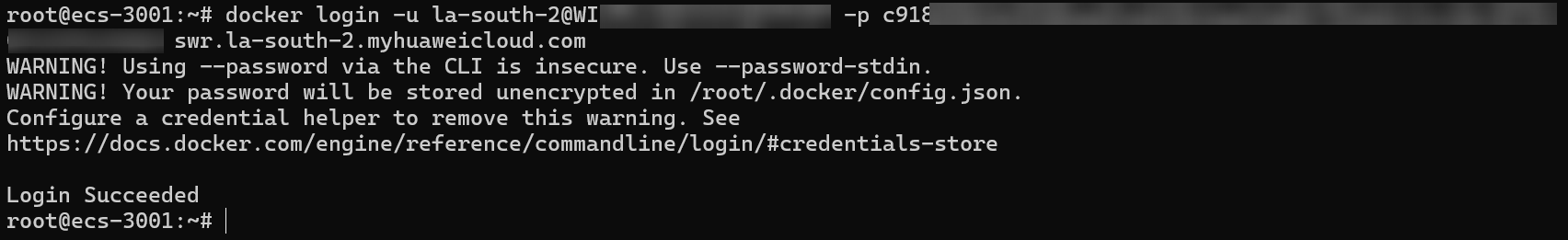 docker login -u la-south-2@RVHVMX\*\*\*\*\*\* -p cab4ceab4a1545\*\*\*\*\*\*\*\*\*\*\*\*\*\*\*\* swr.la-south-2.myhuaweicloud.com