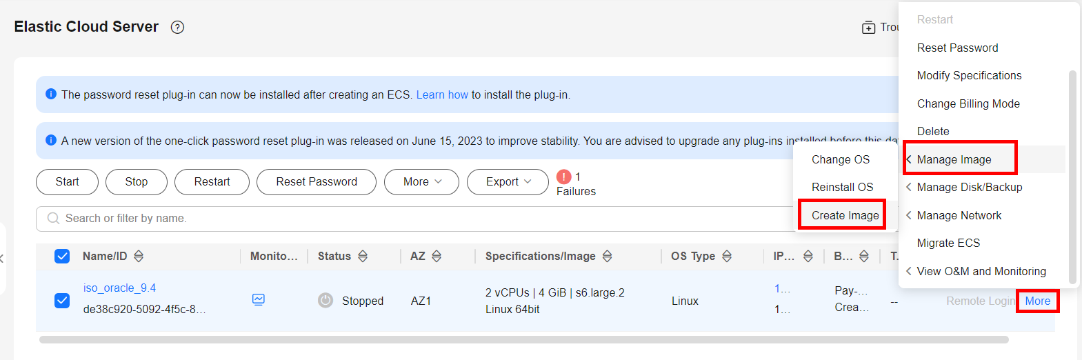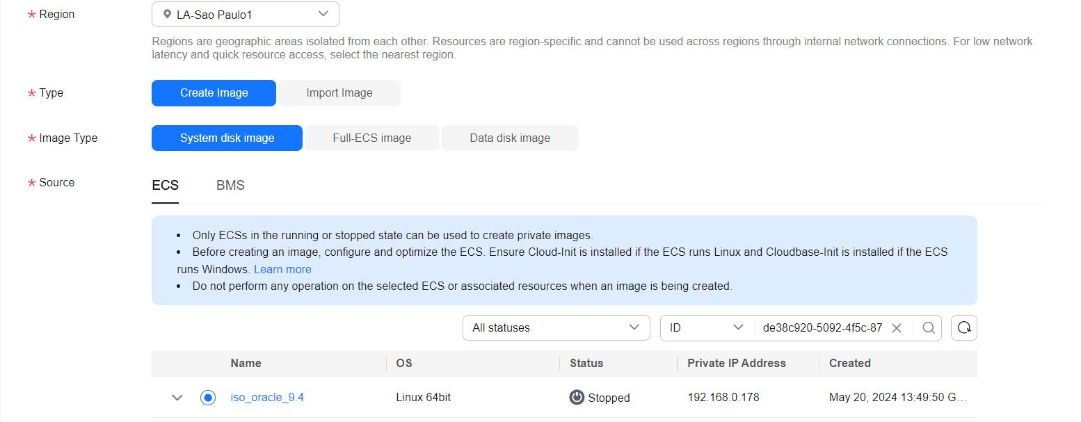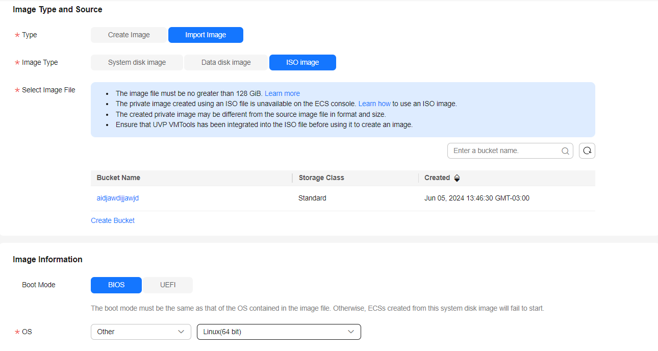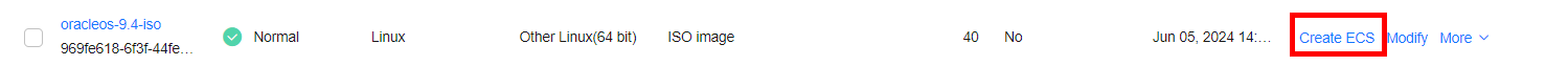 Create an ECS using the image created by importing the ISO image.