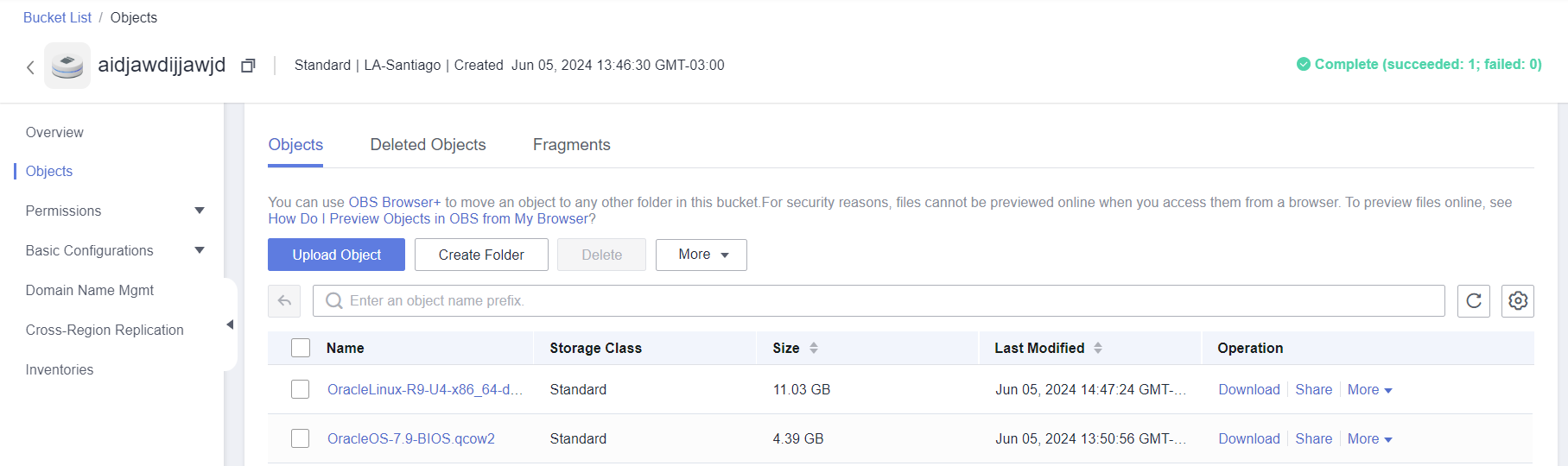 Download the OracleOS ISO image (example - https://yum.oracle.com/oracle-linux-isos.html) and upload it to OBS.