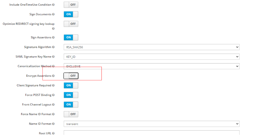 Turn off the “Encrypt Assertions” option and click “Save” to save the changes made.