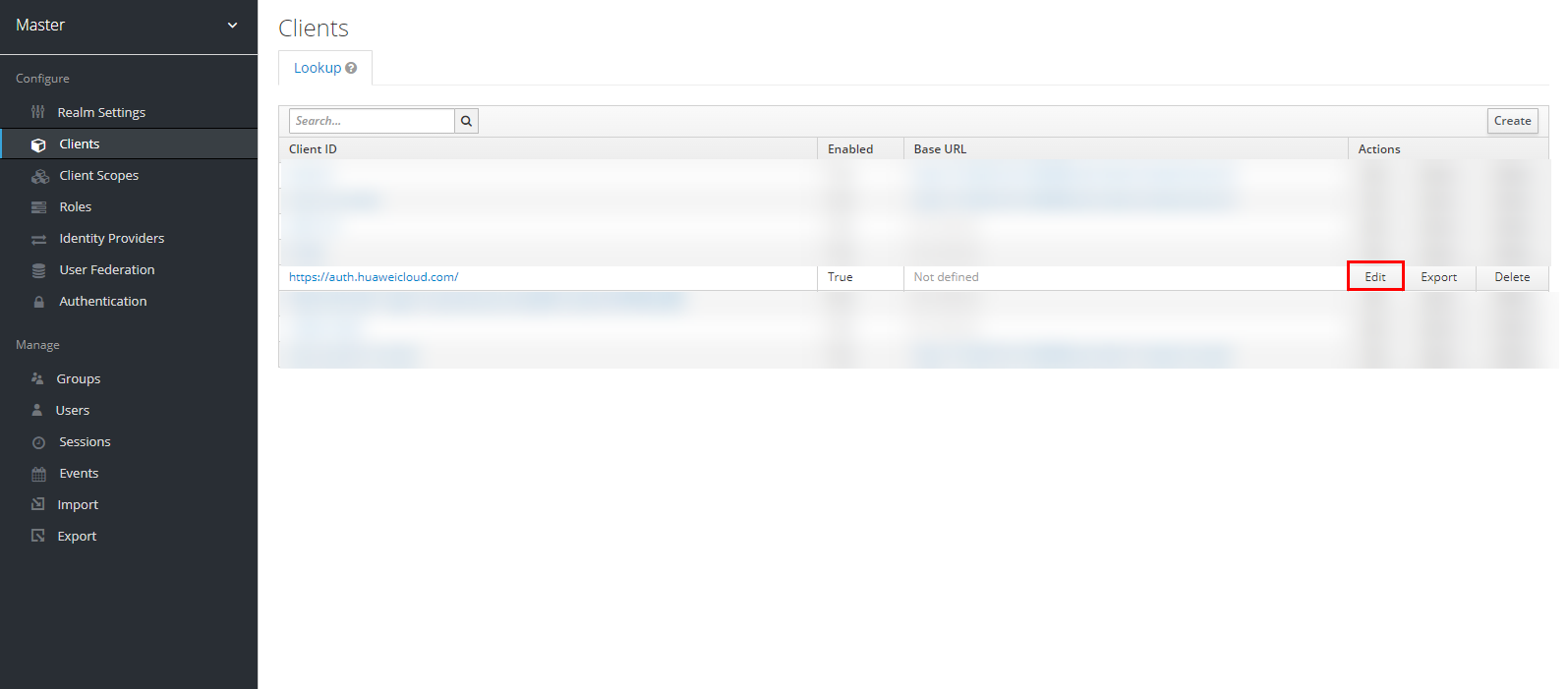 Navigate to the Huawei Cloud client you created, and then click “Edit” to edit the client settings.