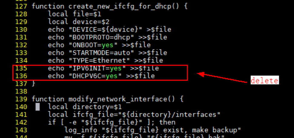 To resolve this error, unmount the system disk of the migrated machine and connect it to the intermediate ECS. Mount the system disk in a new directory (in this example it was mounted in the /mnt folder) with the “mount” command and access the following file: “vim /mnt/etc/sysconfig/network-scripts/ifcfg-eth0”. Comment out the following two lines in the file and save the file with “:wq”.