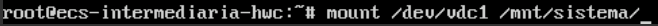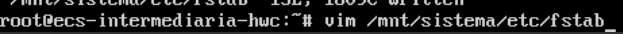 If the ECS has problems during its initialization, follow the steps below to edit the system’s fstab disk table. It is worth noting that for this step it will also be necessary to use an intermediate ECS if the filesystem of the original ECS is set to read-only due to a bad initialization. First, mount the system disk in a directory.