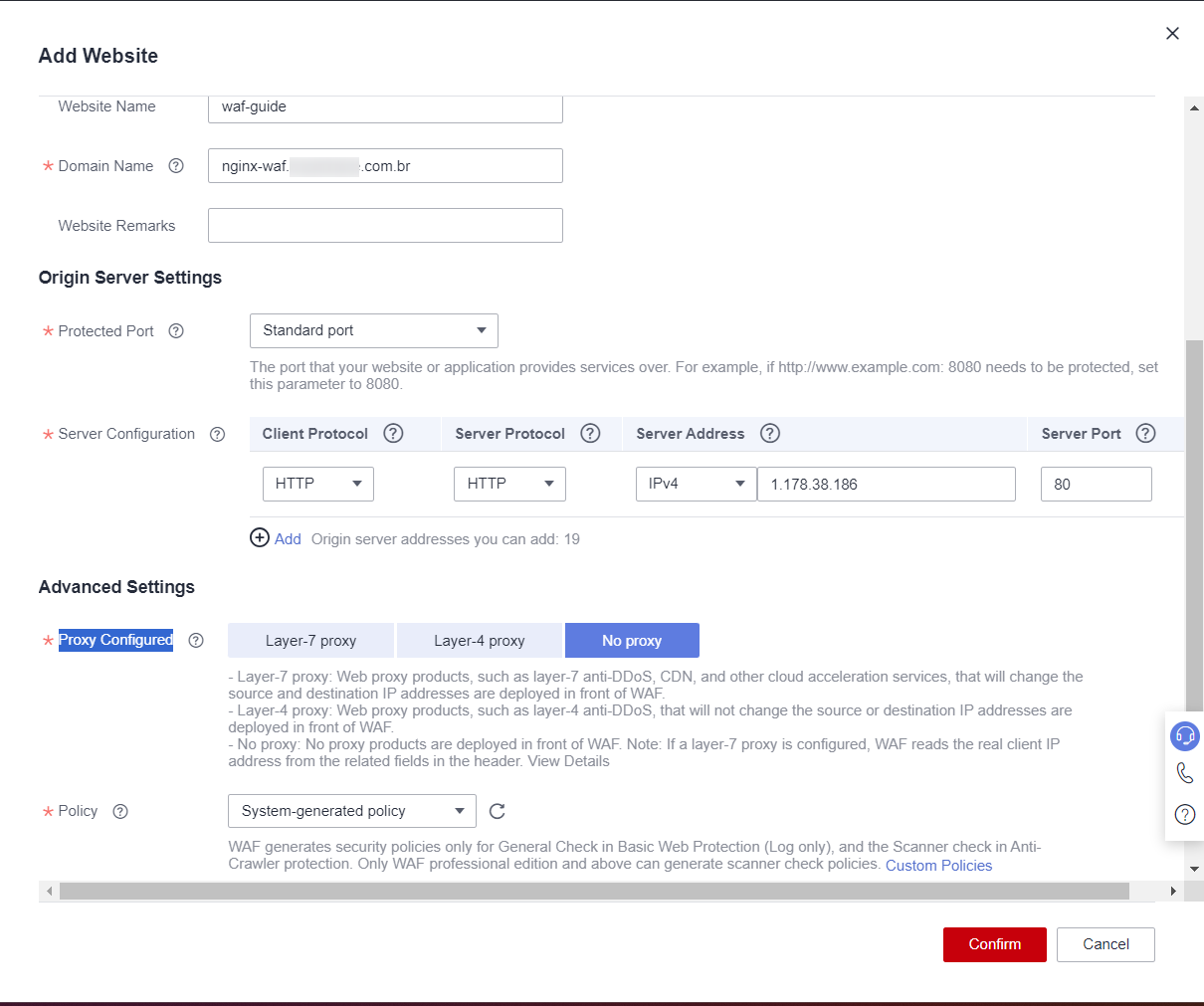 Select your domain, in this case, it’s nginx-waf.example.com.br