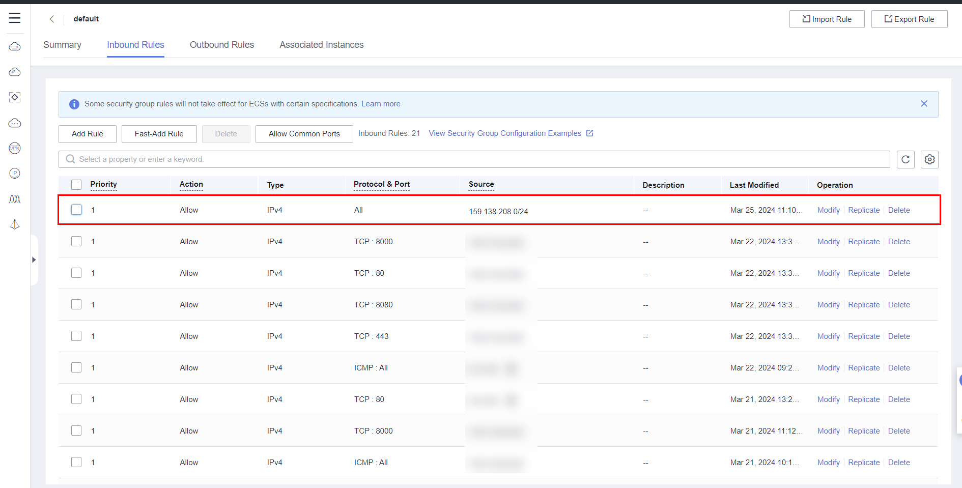 First, we`ll whitelist the WAF IP range to all ports in the security group: